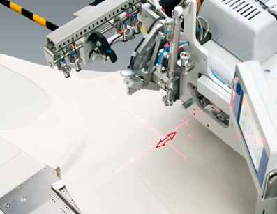 * Lampa laser controlata de motor pas cu pas (ofera posibilitatea de a aseza lampa laser diferit in functie de programul de coasere construit.